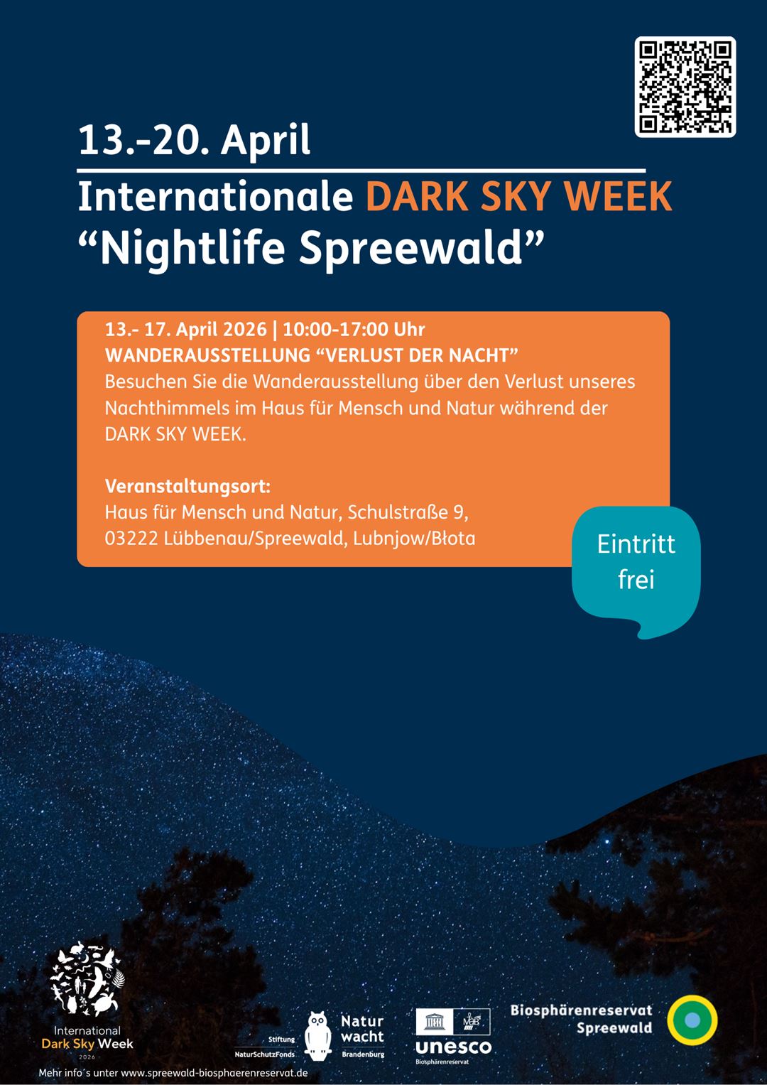 Die Wanderausstellung „Verlust der Nacht“ rückt den Wert der natürlichen Dunkelheit in den Mittelpunkt und macht auf ihre zunehmende Gefährdung aufmerksam. Sie beleuchtet die Auswirkungen des verschwindenden Nachthimmels auf Menschen und Umwelt und zeigt zugleich konkrete Handlungsoptionen auf – von der kulturellen Rolle der Sterne über die Navigation von Zugvögeln bis hin zu nachhaltigen Beleuchtungskonzepten für moderne Städte.